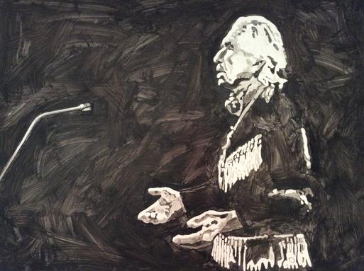 This work is based on the queen’s CBC TV address from Parliament Hill on July 1, 1967. I attempted to create a stark, provocative, authoritative and unflattering portrait of the queen. Queen Elizabeth's CBC television address July 1st, 1967.