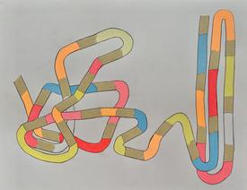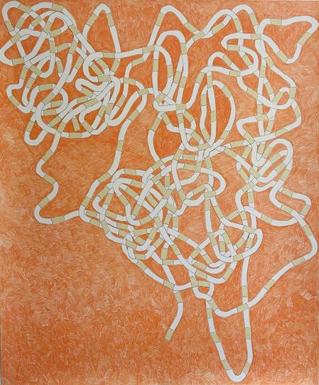 A cigarette suggests a unit of life being spent, a temporal unit, a single meaningful thought, emotion or realization. Each cigarette can be seen as a unit of expenditure of life or time. One cigarette is a unique decision or event that is increasingly affected by prior decisions or events. The players in any bounded or unbounded composition eventually become aware of other players. These drawings are meant to suggest the deep imperfections in any kind of human connection, a tenuous holding together of things, a greater and greater accumulation of time and commitment.