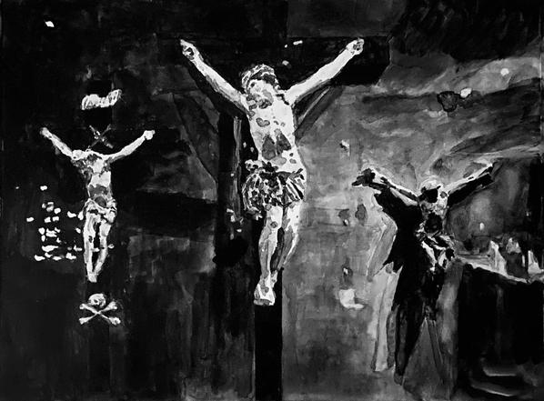 Jim Russell produces images that are familiar and puzzling. Originating from common sources such as documentary and social media, personal, national and international archives, the works resonate because of their incompleteness; they hang in suspension as fragmented film stills suggesting partial narratives that can only be completed by the engagement of the viewer. To do this, viewers must draw upon their own positionality (informed by experiences of historical and contemporary media, and social, cultural and political systems) to resolve the work.
